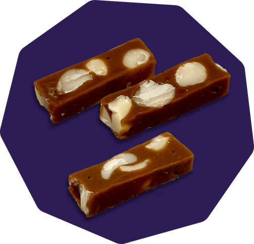 一款結合了焦香和奶香,經準確的温度熬製,再加入鬆脆的夏威夷果仁的手工糖果,香甜美味且不會黏牙,滋味無窮。
